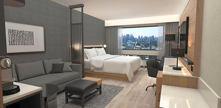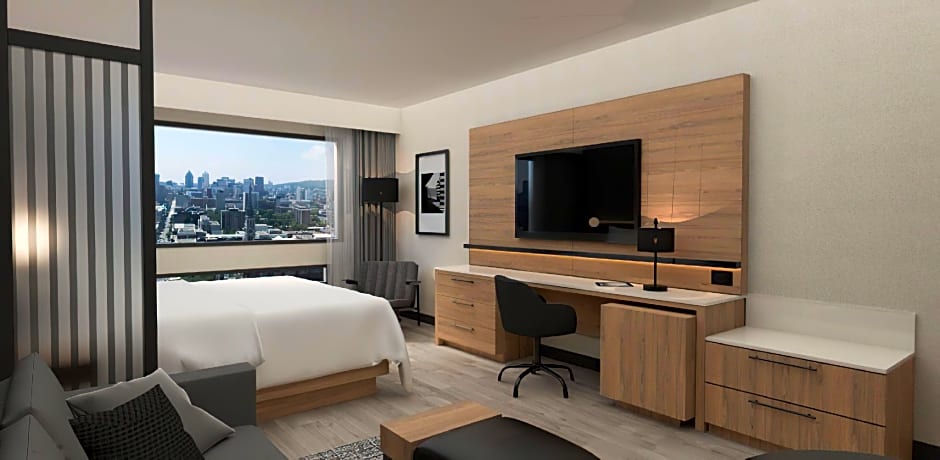 These spacious rooms offers 1 king bed, high-speed wireless and wired internet, air conditioning, flat-screen TVs, Keurig coffee makers, hairdryers, work tables, and ironing equipment.